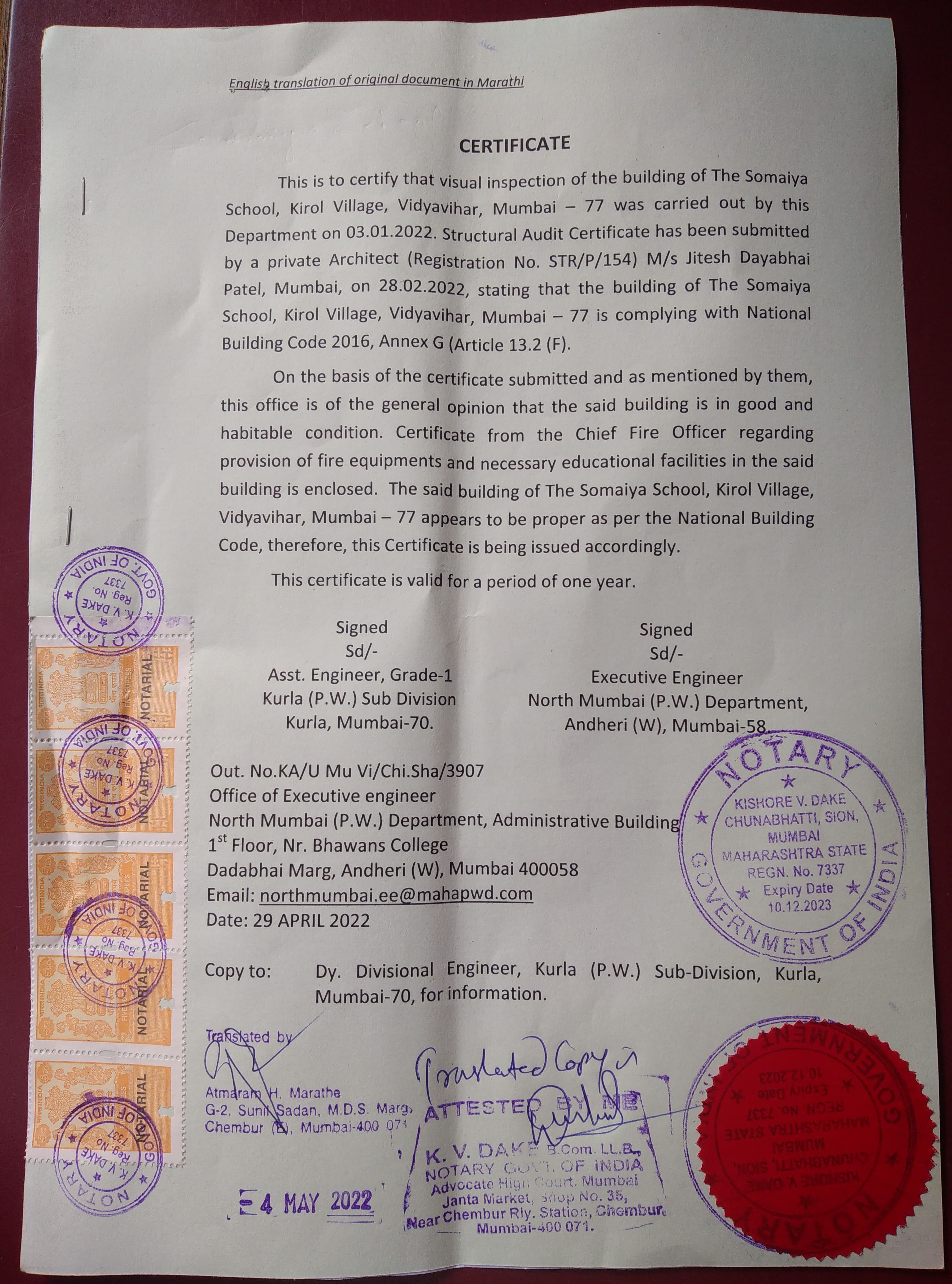 | 05 | Copy of Valid Building Safety Certificate As Per The National Building Code | Click Here |